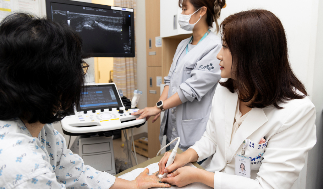 재활의학과에서는 비수술적 치료와 기능 호전을 위한 재활치료를, 류마티스내과에서는 류마티스관절염을 포함한 여러 염증성관절염 및 자가면역질환에 대한 외래진료를 담당하고