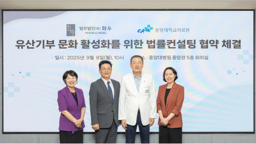 중앙대학교의료원은 유산기부 문화 활성화를 위해 하나은행, 법무법인 화우와 협약을 체결했다.